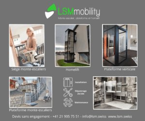 Notre entreprise LSMmobility est une entreprise basée à Denezy commune de Montanaire en Suisse depuis 2016 qui propose monte-personnes et ascenseurs, monte escalier, plateforme élévatrice pour fauteuil roulant, ascenseur privatif. Notre but est de proposer des solutions pour vous affranchir de vos escaliers et de garantir un accès facile aux personnes à mobilité réduite (PMR).